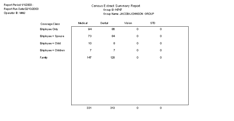 If this option is selected, after extracting the claims, the program will generate a Census Extract Summary Report.